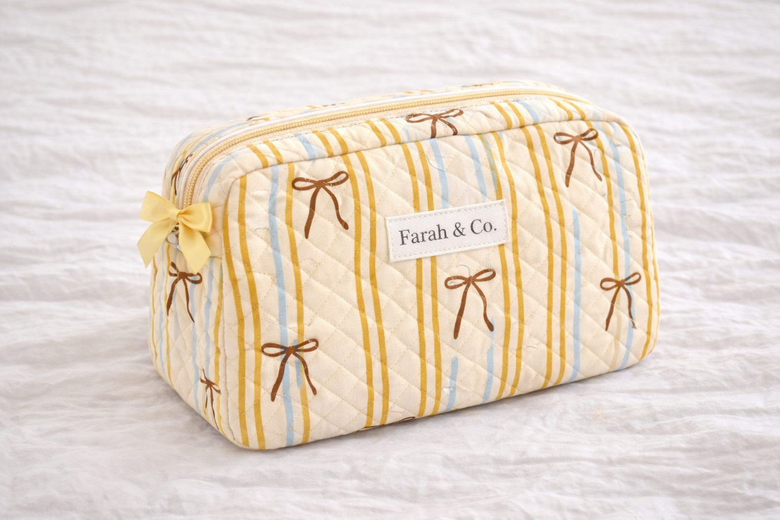 Golden Ribbon Quilted Makeup Pouch – Bow Cosmetic Bag